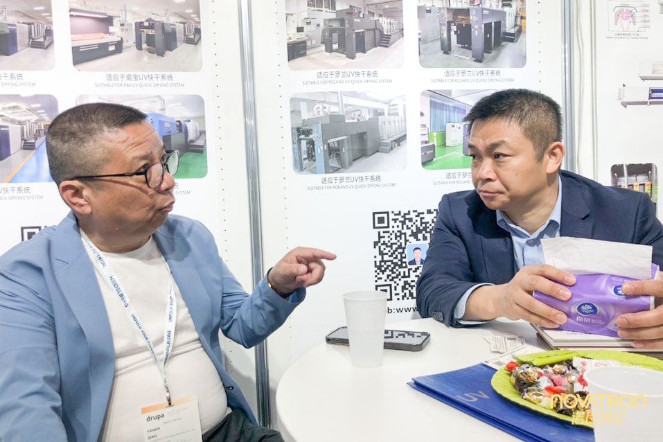 Novatron Chairman, Qian Yanan, accepted the invitation to the exhibition and, together with Marketing Director, Xue Xuege, led the team to embark on the journey to Drupa. This exhibition is not only a feast of technology but also a platform for in-depth exchanges and co-creation of the future among global printing industry colleagues.